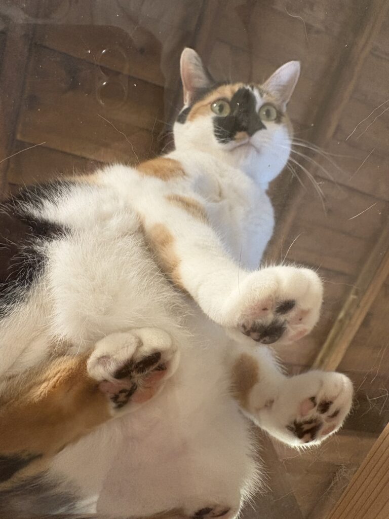 その肉球食べないのか?がっつくようで悪いが僕の大好物なんだ。、、、、、、、、、、くれないか?